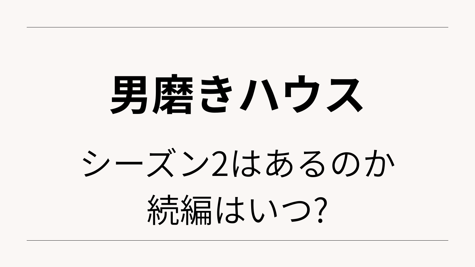 最終回の放送を目前にして、SNS上では早くも「”男磨き”の続きはいつ放送されるのか」という声が多かったので、”男磨きハウス”の続編”男磨きハウスシーズン2”は放送されるのか調べてみました。